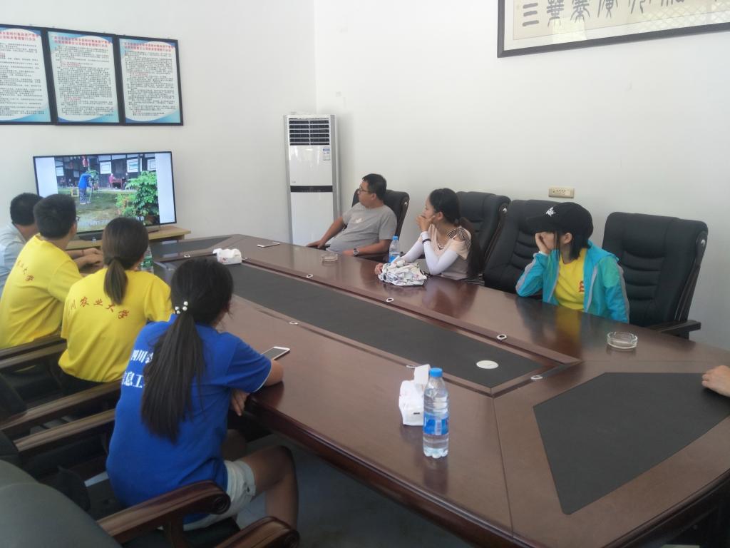 郭主任和社会社会实践团队在公司会议室观看宣传片 胡笳 摄