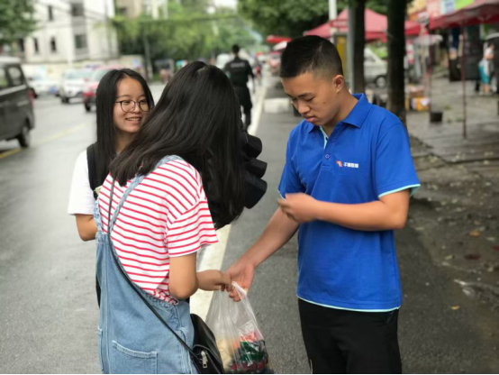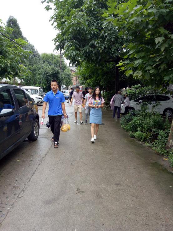 提着水果和牛奶,团队成员出发去老人的家 袁春红 摄
