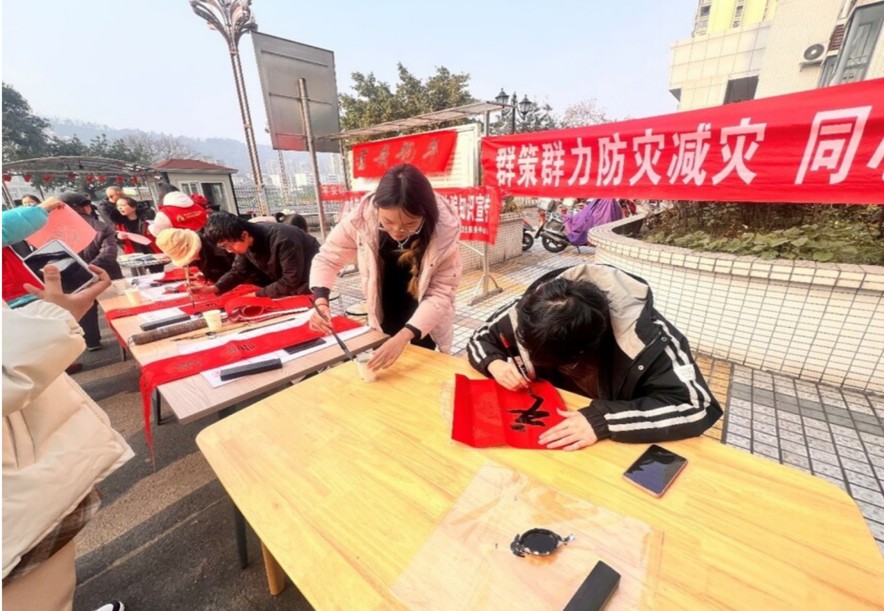 “信”火志愿分队成员在新年来临之际,为给居民们送上一份诚挚的祝福和温馨的问候,前往水中社区组织开展了一场别开生面的“迎新春 写春联 送祝福”活动。10余名书法爱好者挥毫泼墨,书写出一副副充满吉祥和美好寓意的春联。这些春联不仅传达了对新年的美好祝愿,也展现了中国传统文化的独特魅力。同时,同学们还为居民提供了书法技巧的讲解,让他们更深入地了解和欣赏中华传统文化的瑰宝。