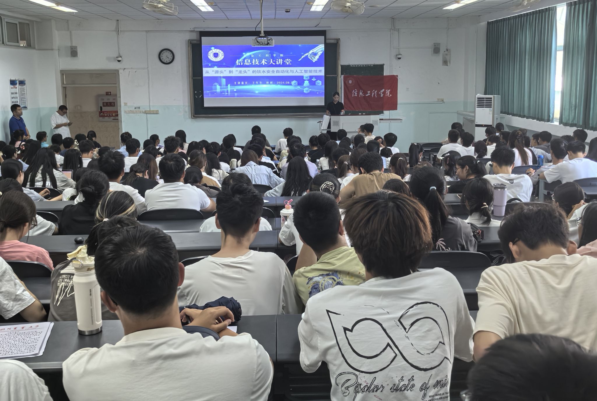 9月23日下午16:20,南京邮电大学自动化学院、人工智能学院王冬生副教授做客信息工程学院“信息技术大讲堂”,就饮水安全自动化与人工智能技术开展学术讲座,吸引信工学院两百余名师生积极参与。